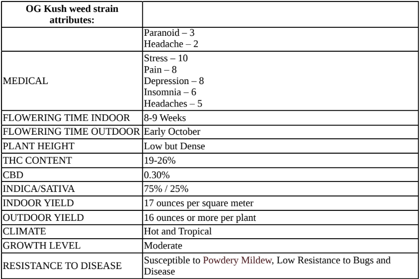 A strong presence of high levels of THC, has made OG Kush a very strong strain – with